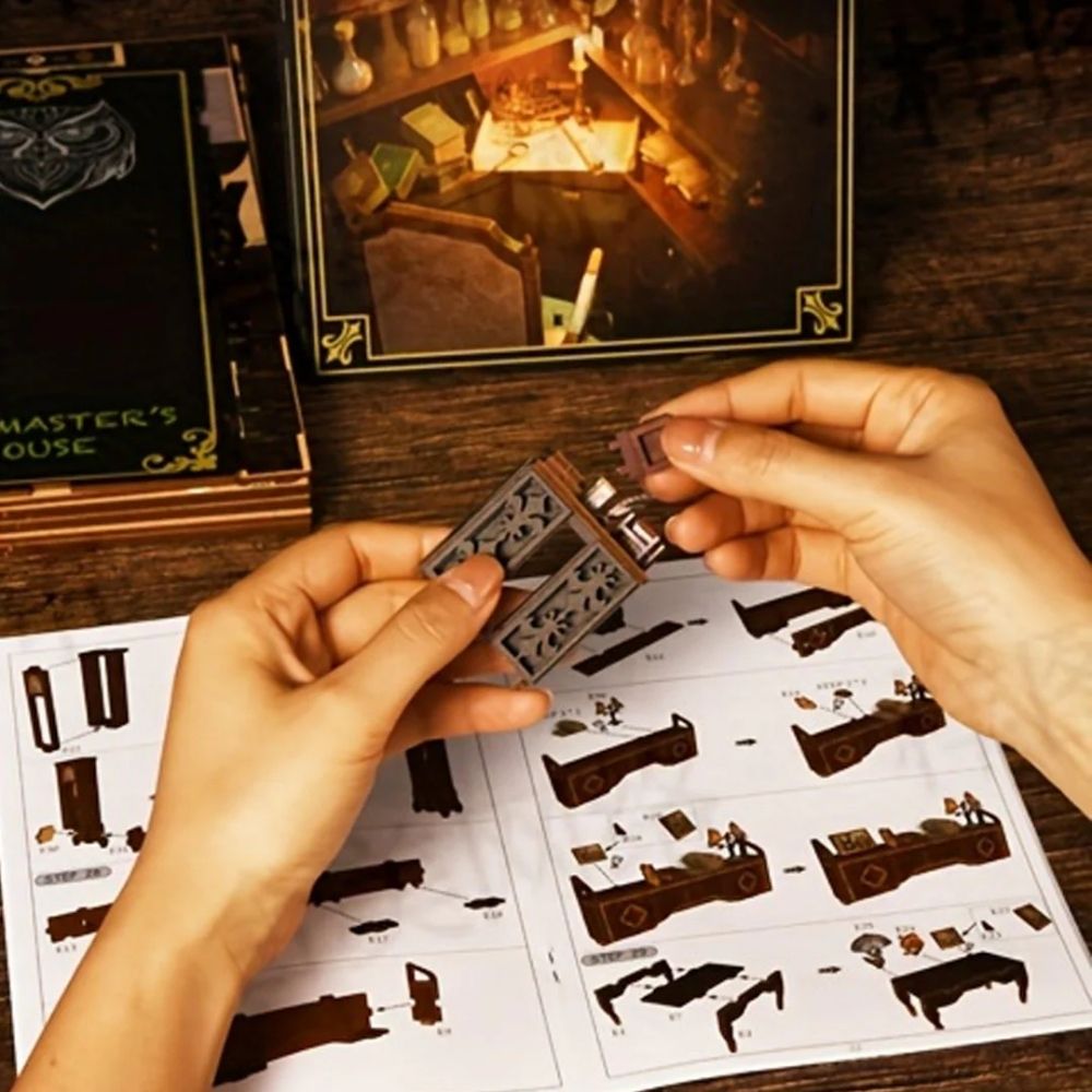 Your comprehensive kit arrives with everything you need: pre-cut wooden pieces, LED lighting components, a detailed instruction manual, and all the miniature accessories required to build your enchanting scene.