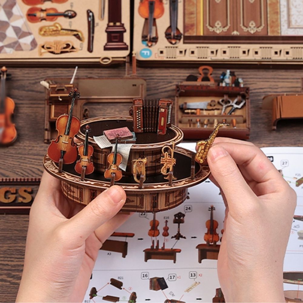 Bach Strings captures the timeless beauty of a European music atelier in miniature form. Inspired by quiet evenings in old towns, where baroque melodies drift through narrow streets and warm light reflects off wrought-iron balconies, this tiny workshop brings that sense of elegance to life. Inside, you'll find charming details, miniature instruments, vintage scores that evoke the world of classical craftsmanship. This miniature scene offers a refined, atmospheric glimpse into a place where music, tradition, and artistry come together.