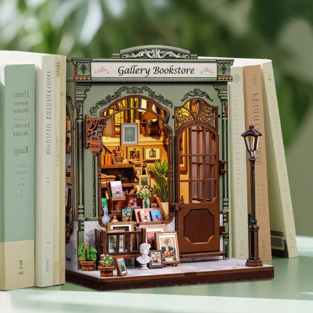 The Gallery Bookstore captures the charm of a quiet shop that feels part book haven, part art studio. Soft light settles on wooden floors, vintage volumes fill every corner, and framed paintings create the sense of wandering through a tiny, timeworn gallery. It's the kind of hidden spot you might discover in an old town, where hours slip away as you browse weathered pages and admire artworks long forgotten. This miniature scene brings that atmosphere to life, offering a peaceful world where stories and creativity meet in perfect harmony. As you assemble this peaceful little shop, you enter a world without hurry, just soft light and the quiet satisfaction of bringing a tiny, joyful place to life with your own hands.