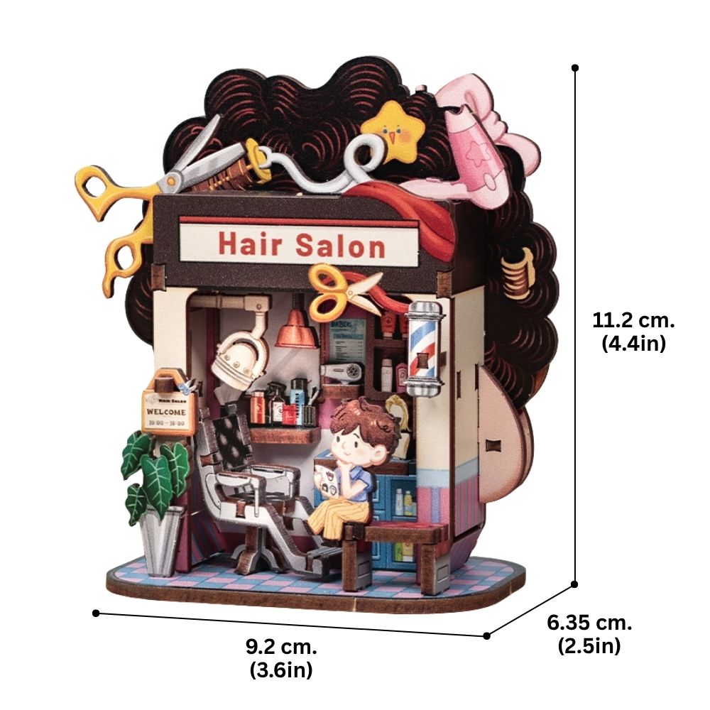Step into the Little Hair Salon, a cute and cartoonish miniature full of tiny mirrors, chairs, and playful styling accessories. Every little detail is fun and whimsical, turning this dollhouse into a cheerful, energetic scene. Perfect for bringing a smile to your shelf!