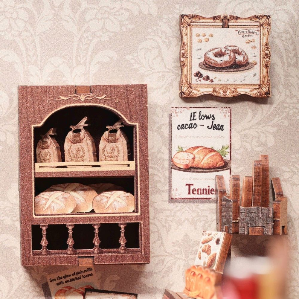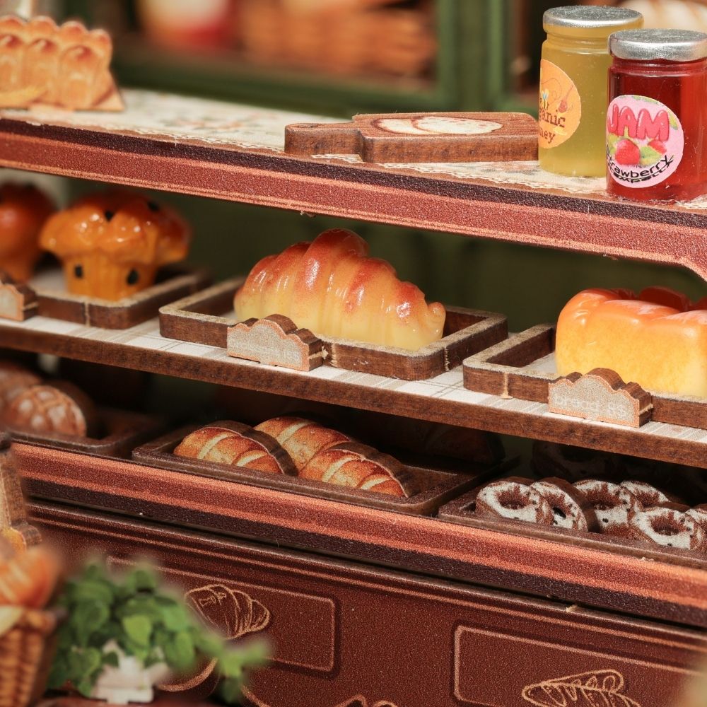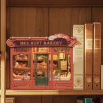 Discover the beauty of the Mrs.Hunt Bakery, a miniature dollhouse that captures the cozy charm of a classic bakery. Every detail, from the display of freshly baked bread to the tiny utensils and décor, creates a welcoming atmosphere that almost lets you smell the aroma of warm bread straight from the oven. This enchanting miniature scene brings the comforting spirit of a neighborhood bakery to life, making it a delightful addition to any shelf or collection.