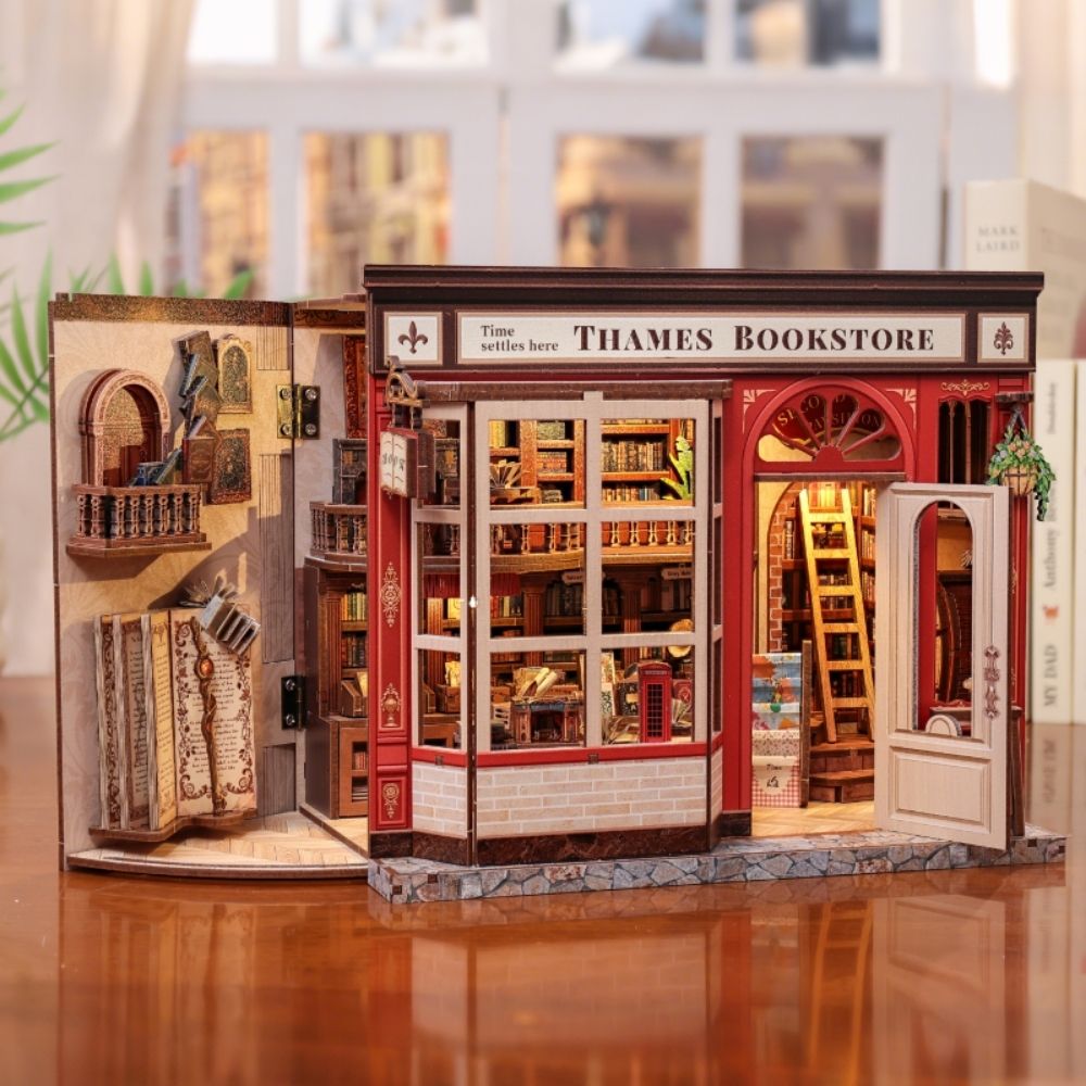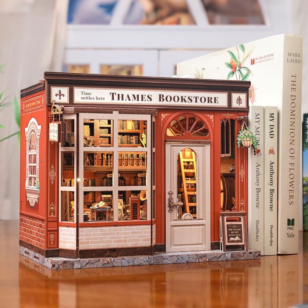 Thames Bookstore evokes the charm of a quiet London passage, where time seems to settle gently between old bricks and well-worn pages. Peering inside, you'll find soft light filtering across wooden shelves filled with books that look as though they've gathered decades of stories. The glow from the arched window falls delicately on yellowed pages and a vintage gramophone, creating an atmosphere where every detail hints at memories, dreams, and tales waiting to be rediscovered. Upstairs, you'll find a hidden, mysterious corner. Perhaps it shelters an unfinished manuscript, a forgotten letter, or a quiet message left by a late-night reader. This miniature scene captures the nostalgic soul of an old bookstore, offering a warm and imaginative escape into the world of literature.