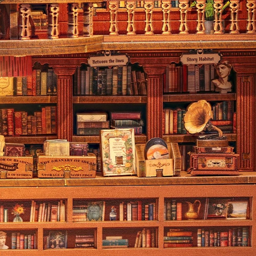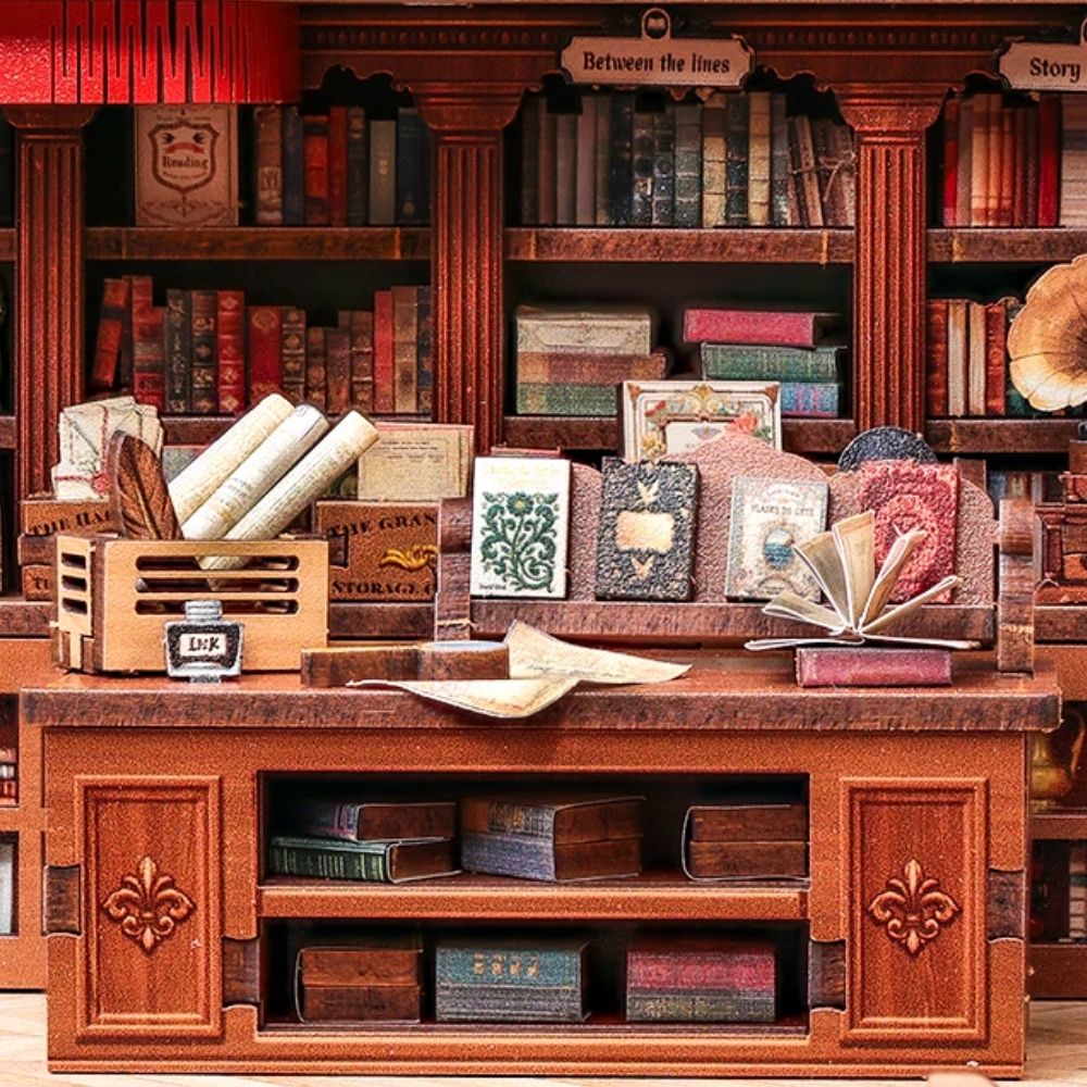 Chaque kit Book Nook comprend tous les matériaux nécessaires pour construire votre scène miniature, y compris des pièces pré-découpées, des instructions et tous les accessoires nécessaires tels que des lumières ou des figurines.