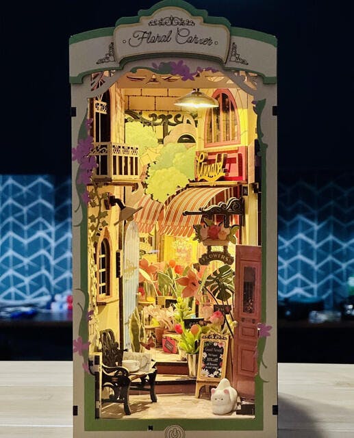 Each Book Nook Kit includes all the materials you need to build your miniature scene, including pre-cut pieces, instructions, and any necessary accessories like lights or figures.