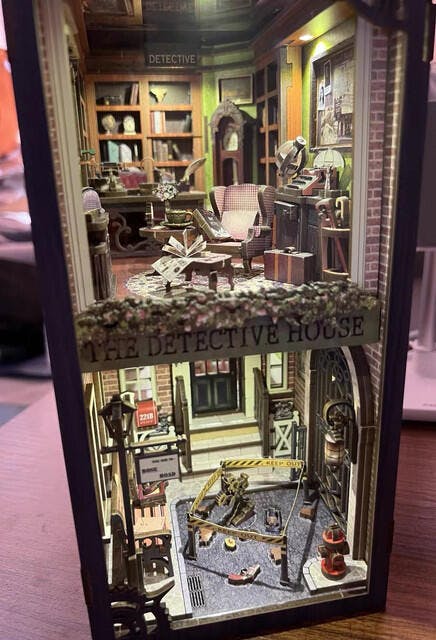Bring the intrigue of the Rose Detective Agency to your bookshelf, desk, or any flat surface with this captivating DIY Book Nook kit. Assemble, decorate, and light up your very own miniature world! Proudly display your creation as a unique bookshelf insert or a standalone miniature scene, perfect for any mystery lover's home.