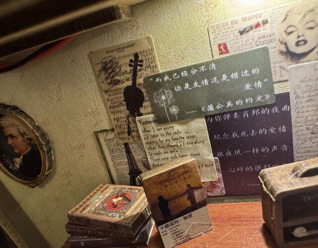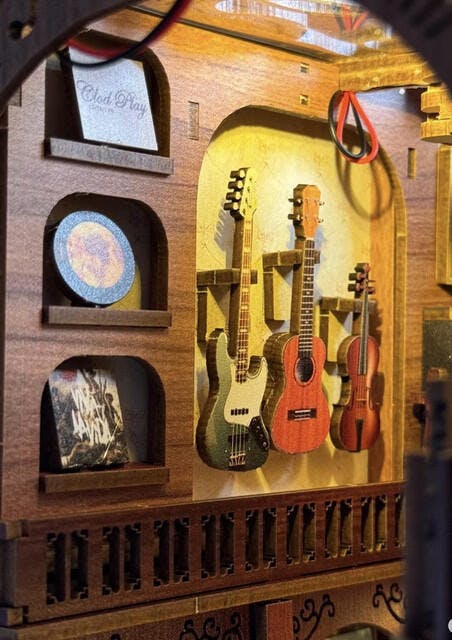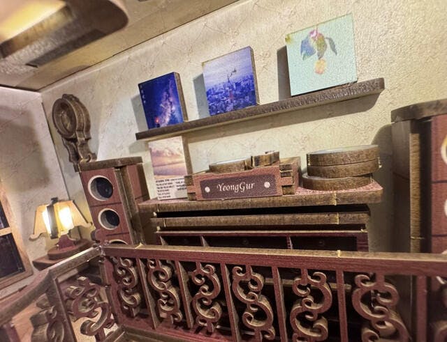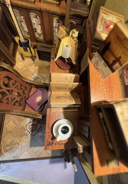 Bring the magic of "The Secret Rhythm" to your bookshelf, desk, or any flat surface with this delightful DIY Book Nook kit. Assemble, decorate, and light up your very own miniature world! Proudly display your creation as a unique bookshelf insert or a standalone miniature scene, perfect for any book lover's home.