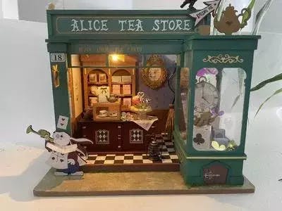 Return to the land of fairy tales with this Alice's Tea Store inspired by the world of Alice in Wonderland. This kit includes familiar elements like the White Rabbit, pocket watches, and checkerboard tiles, creating a rich and picturesque afternoon tea scene. Assemble this kit with your friends and family and let yourself be carried away by the story.