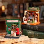 Immerse yourself in the atmosphere of a classic post office with this miniature house kit. This model allows you to recreate a space where letters and parcels are received and sent. The interior is richly detailed with elements such as a postman's desk, envelopes, newspapers, and a red mailbox, creating a warm and welcoming atmosphere.
