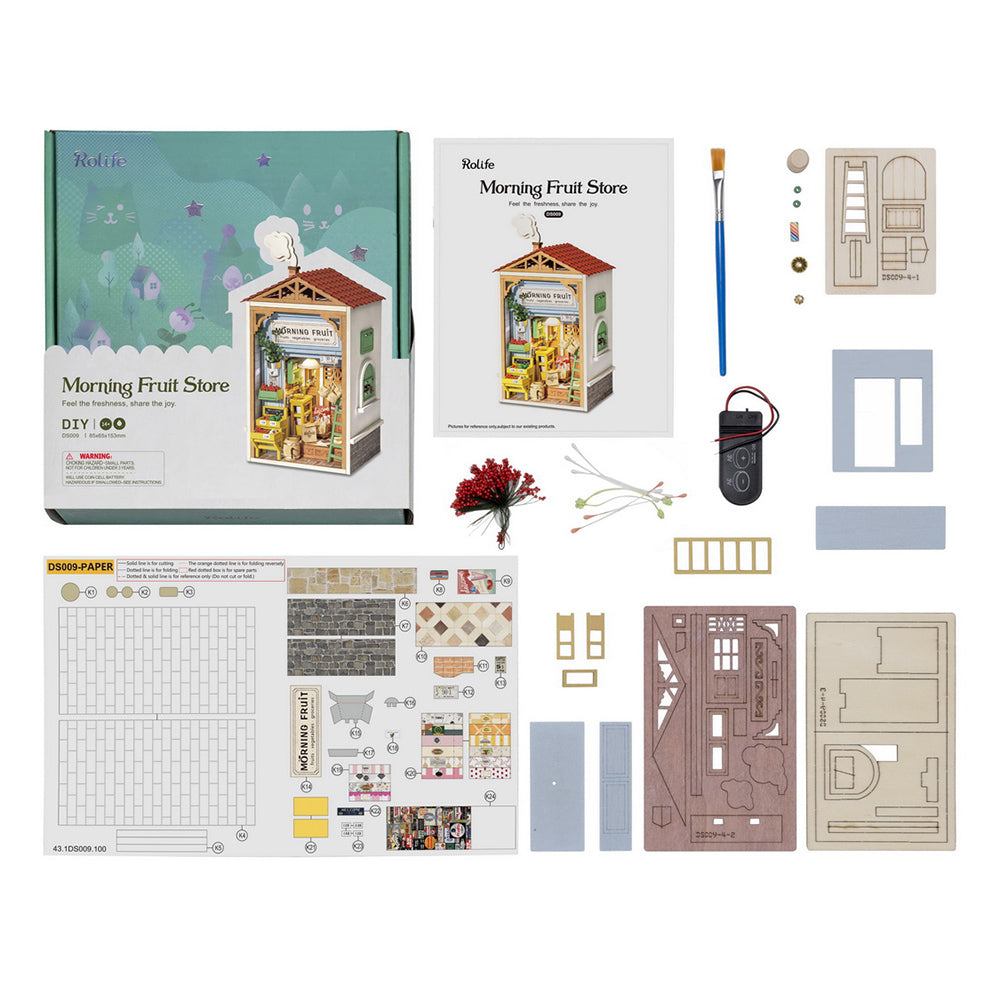 Each kit contains everything you need: pre-cut wooden pieces, miniature accessories, LED lighting, a battery box, an illustrated assembly guide, and much more. No special tools are required; everything is ready to use.