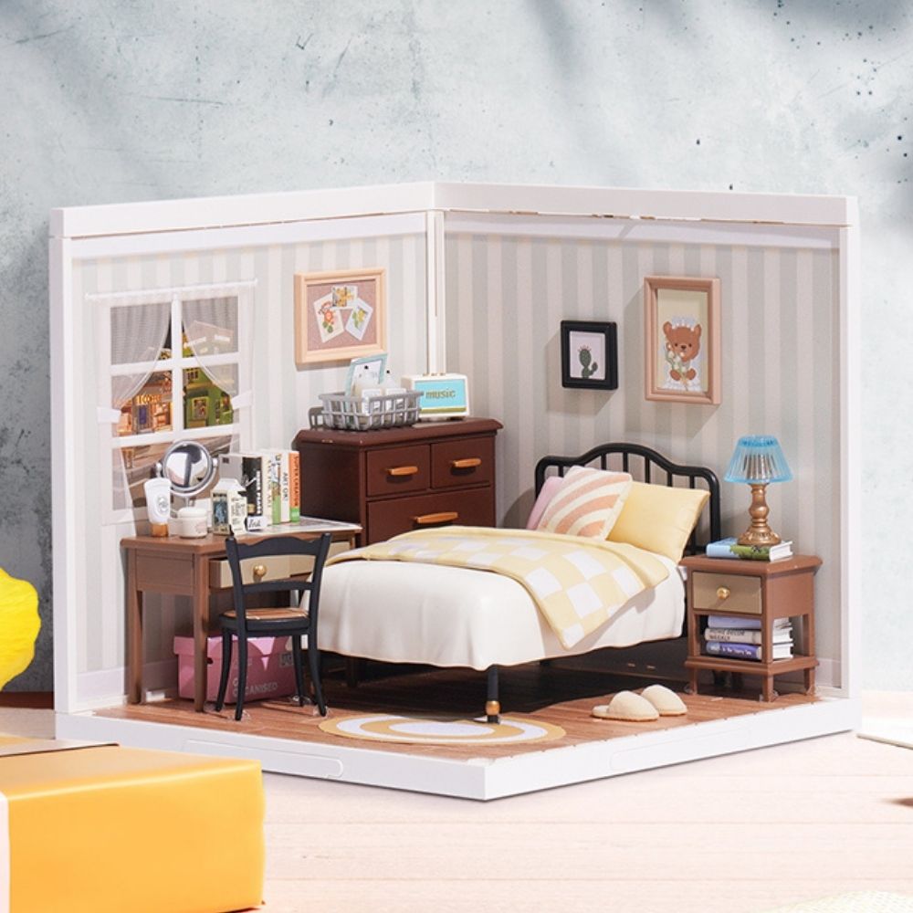 Add your personal touch to this bedroom by incorporating additional accessories or decorations. Whether to enhance your space or offer a unique gift, this kit provides a perfect opportunity to create a personalized miniature decor.