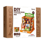 Immerse yourself in the cozy atmosphere of a welcoming bookstore with this miniature house kit. This model allows you to recreate a space where books are neatly arranged on wooden shelves, with decorative elements such as a reading lamp, magazines, and baskets, creating an environment conducive to reading and relaxation.