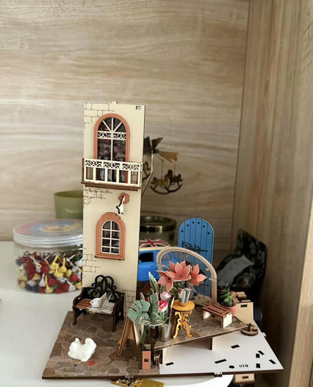 2. Packen Sie Ihre Welt aus Ihr komplettes Set enthält alles, was Sie benötigen: vorgeschnittene Holzteile, LED-Beleuchtungskomponenten, eine detaillierte Bedienungsanleitung und all das Miniaturzubehör, das für den Bau Ihrer bezaubernden Szene erforderlich ist.