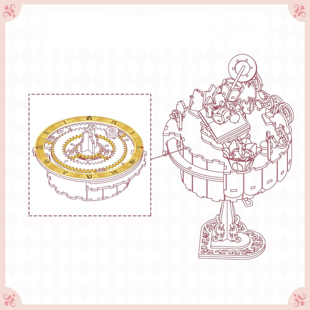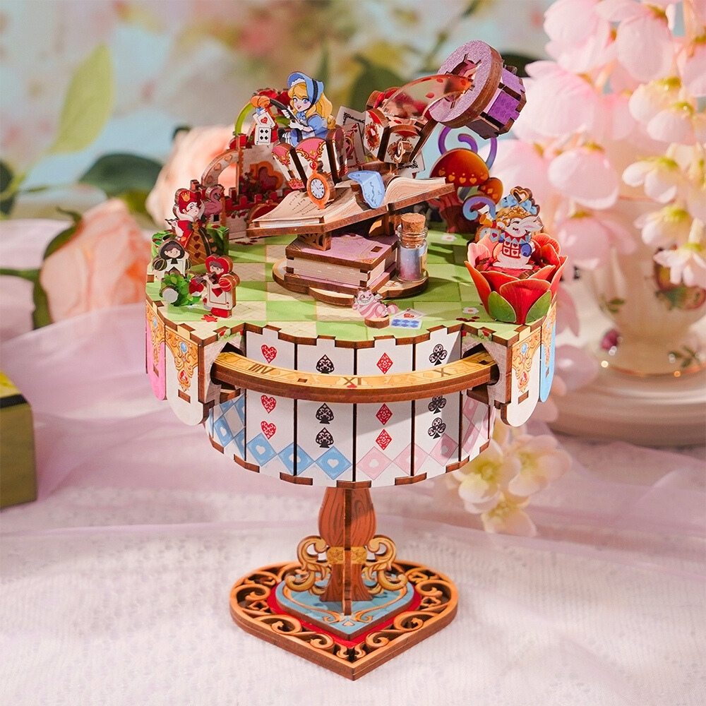 Step into the wonderful world of Alice with this 3D puzzle, where the Cheshire Cat, the White Rabbit, and the Mad Hatter’s Hat come to life. Discover clocks, playing cards, and the Queen of Hearts in magical and surprising details. Each piece turns the assembly into a fantastic and enchanting adventure.