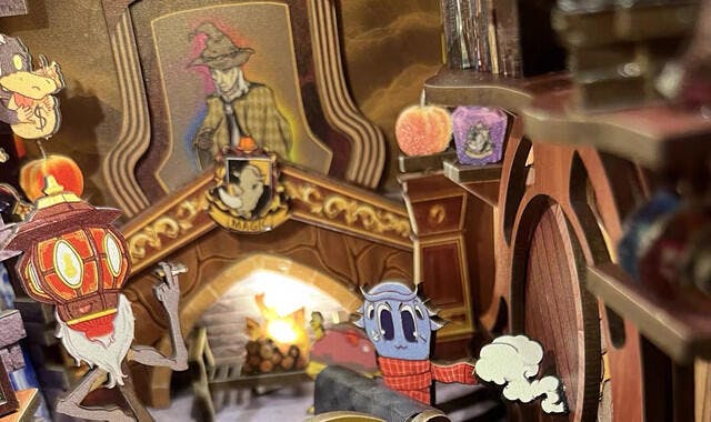 Bring the magic of the Fantastic Animal Common Room to your bookshelf, desk, or any flat surface with this delightful DIY Book Nook kit. Assemble, decorate, and light up your miniature world! Display it as a unique bookshelf insert or a standalone magical scene.