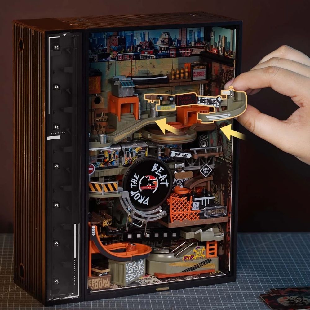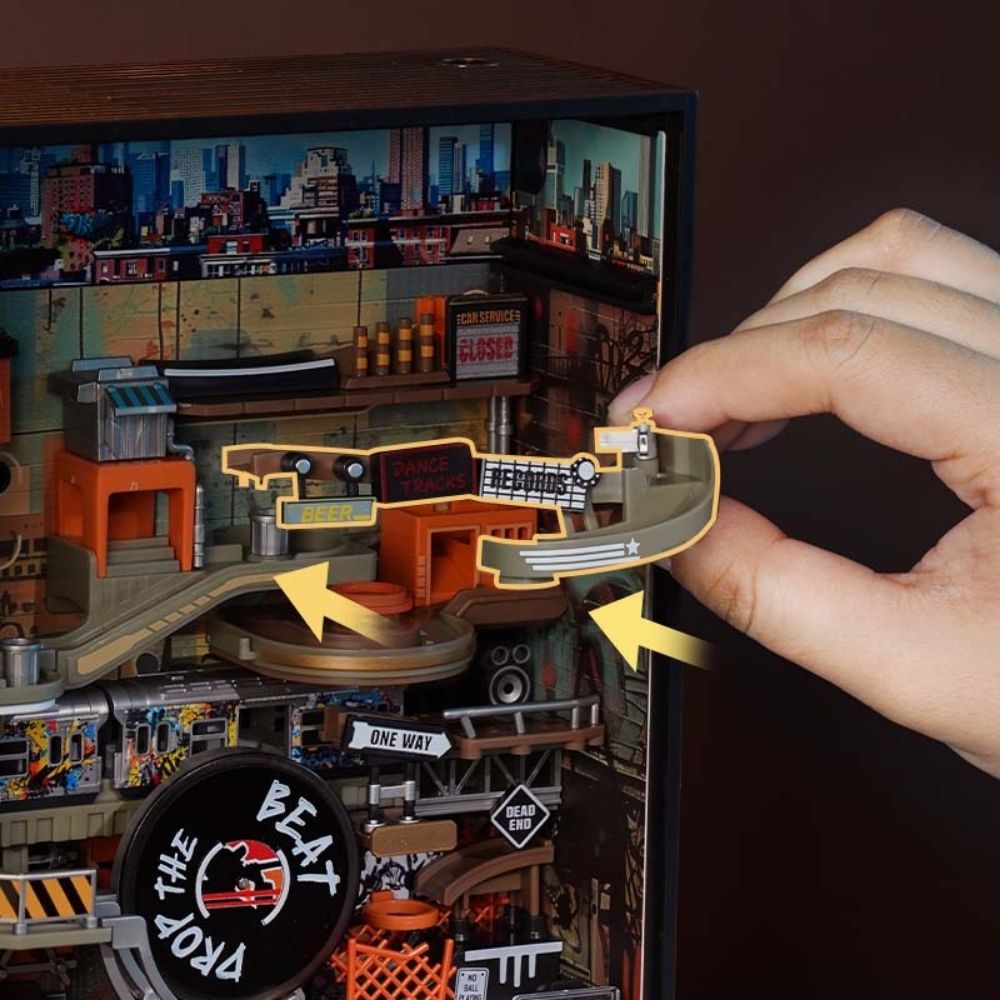 This mechanical 3D puzzle lets you build a dynamic marble run inspired by urban street culture. With precision-cut wooden pieces and smooth gear mechanisms, the marbles roll, twist, and turn through ramps, loops, and obstacles, creating a visually captivating kinetic sculpture. Assembling the puzzle offers a challenging and engaging experience, while the finished model serves as a unique interactive display piece for enthusiasts of mechanical puzzles, urban design, and hands-on activities.