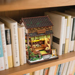 Chaque Kit de Book Nook contient tout ce qu’il vous faut pour assembler votre scène miniature : pièces en bois prédécoupées, guide pas-à-pas, éclairage LED, figurines et accessoires assortis.