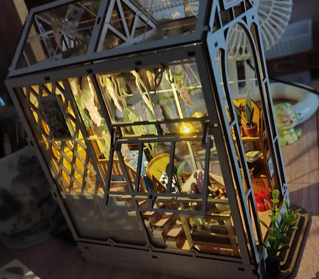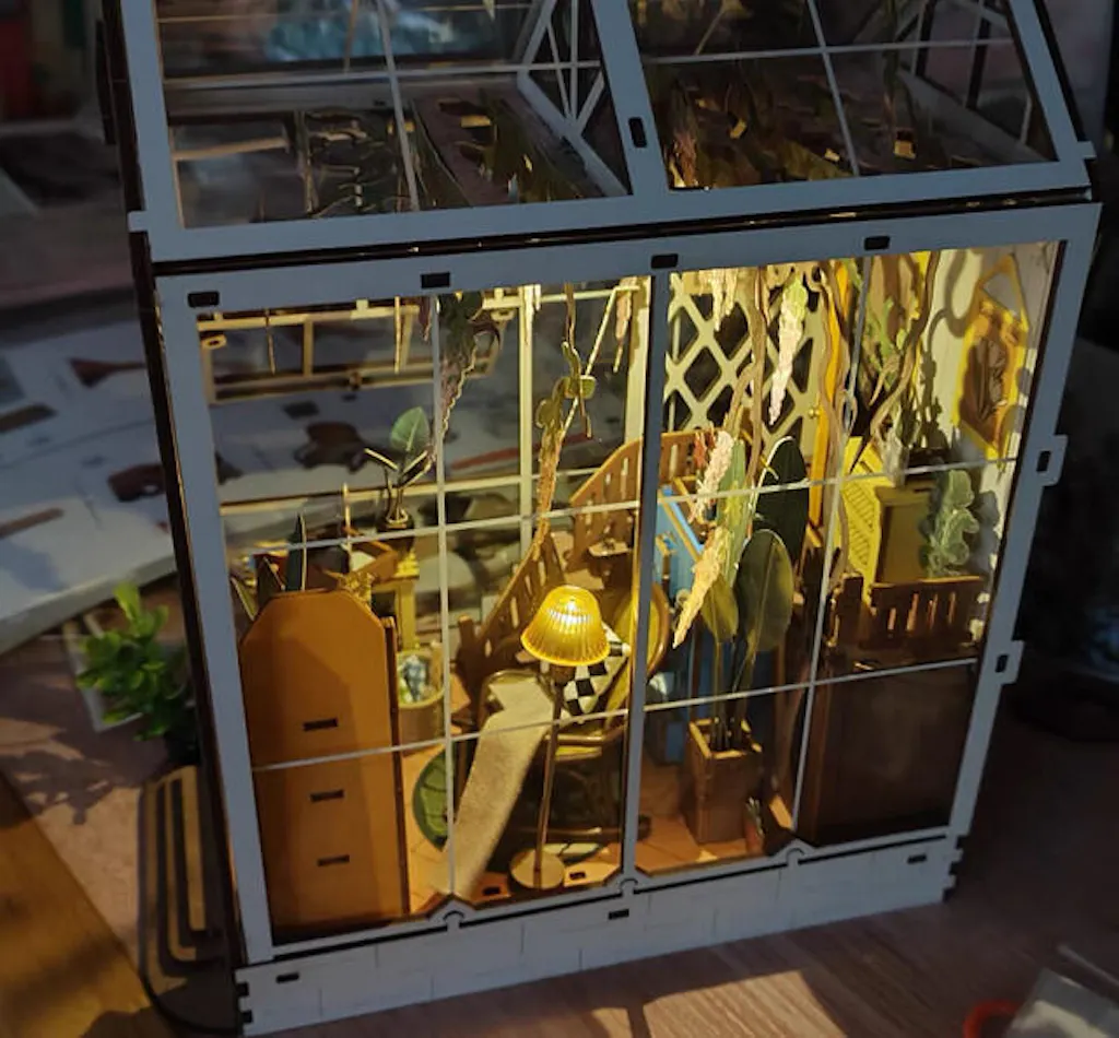 Segui la guida passo dopo passo per assemblare la struttura in legno e gli elementi interni. Poi, dai spazio alla tua creatività aggiungendo minuscoli mobili, piante e figurine. Infine, installa le luci a LED per dare vita alla tua scena con un bagliore caldo e magico.