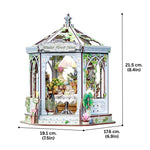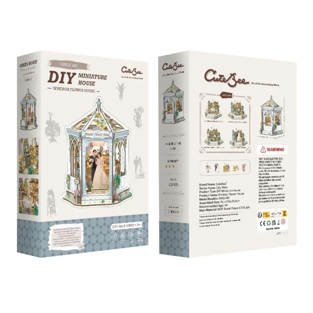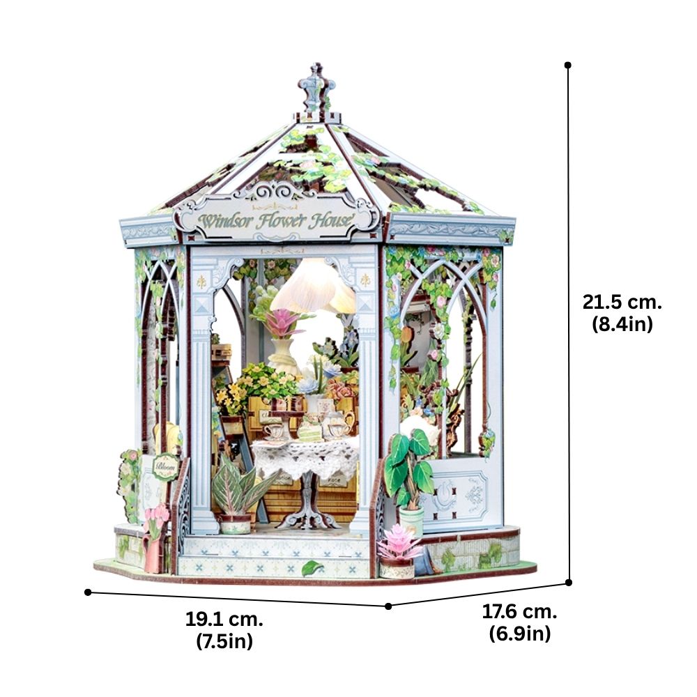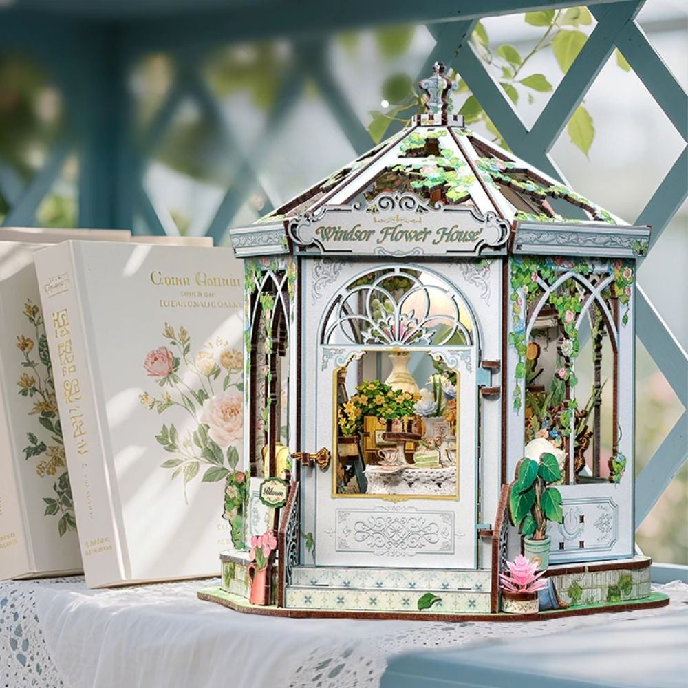 Windsor Bloemenhuis nodigt je uit in een miniatuur glazen kas die baadt in het zachte ochtendlicht. Rankende planten en bloemen bewegen rustig mee, en de thee op tafel straalt nog een vleugje warmte uit, waardoor een sfeer van kalmte en schoonheid ontstaat. Stap deze kleine bloemenwinkel binnen en het voelt alsof je een geheime tuin betreedt, waar elke bloem en elk detail fluistert over romantiek en sereniteit. Door het met de hand te assembleren, wordt het een persoonlijk heiligdom vol rust.